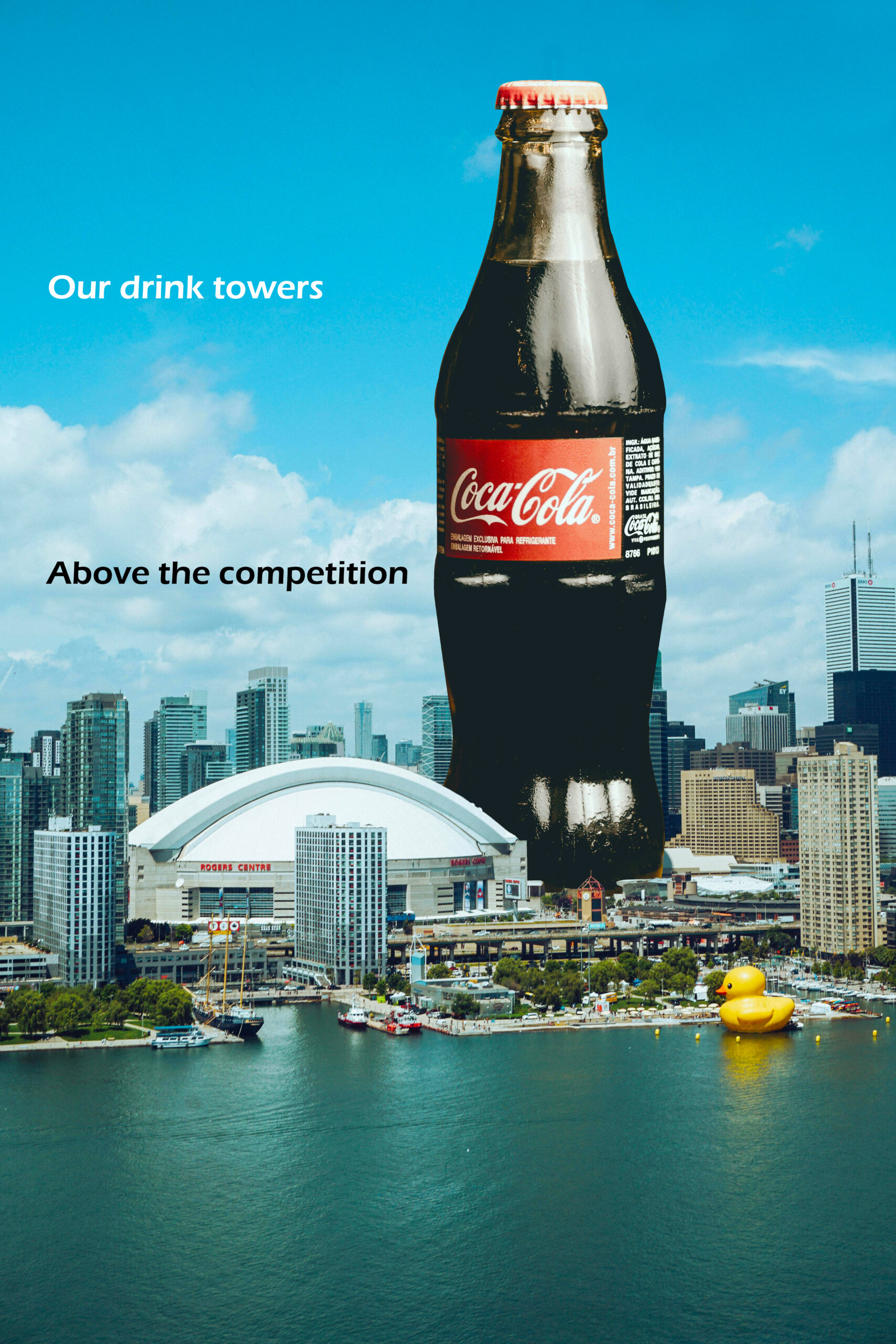 This design project, I was tasked to make a hypothetical advertisement for a company using real photos to create a collage. It was slightly challenging to adjust some of the more minute details, like getting the coke to show up behind some of the more intricately designed structures in the image.
