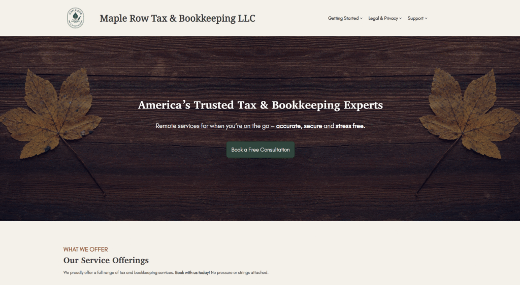 For this project, I created and designed a website for a tax return company named ‘Maple Row Tax & Bookkeeping’. The business owners wanted me to stick to a specific colour scheme (consisting of a shade of orange, green, beige and brown; all colours you might see on a beautiful autumn day). The owners loved it, and they always come back to me when they need any changes. You can check out the full website here: https://maplerowtaxes.com/.